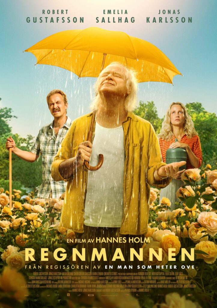 – Jag tror att jag skulle vara ganska jobbig och lite för beskyddande, skrattar han. Regnmannen är ett varmt drama med mycket humor. Vi möter den buttre Ingmar (Robert Gustafsson) som är en kreativ själ och bor i en liten by på Öland. Han är en före detta länsteaterchef och regissör som flyttade från Stockholm som ung kultur-hippie till Kalmar på 80-talet med sin familj för att revolutionera teatern och dess uttryck. Hans hustru gick bort för några år sedan och han har börjat tappa relationen till sin dotter Erika (Emelia Sallhag). Det enda han har kvar är den irriterande, frånskilde grannen Burman (Jonas Karlsson) och hustruns rosor som egentligen är det enda han bryr sig om att vårda. Till råga på allt är det den varmaste och torraste sommaren i mannaminne. Alla väntar på regnet som aldrig verkar komma. Men genom vad som kanske är ett underverk, kanske bara ren slump, får Ingmar äntligen spela huvudrollen i något som kommer att förändra inte bara hans liv, utan hela byns tillvaro eller, ja, kanske rent av hela världens. För filmens regi står Hannes Holm (En man som heter Ove). Berättelsen Regnmannen är baserad på Jonas Karlssons roman med samma namn. Jonas, som vi känner från bland annat Beck-filmerna, spelar rollen som Burman i filmen.